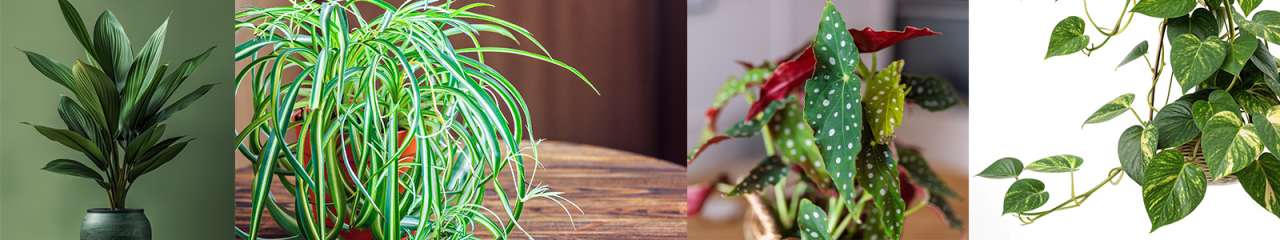 From left to right - Aspidistra. Chlorophytum (Air Plant). Begonia and Epipremnum (Pothos).