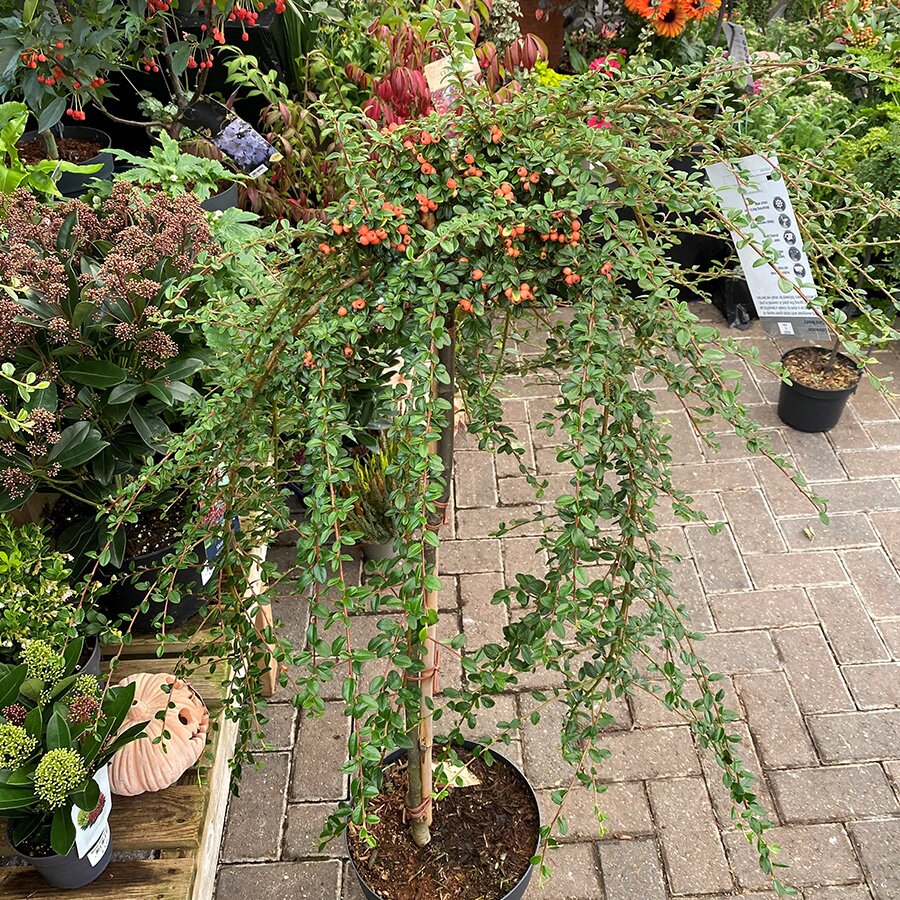 This shrub has been grafted on a stem to create a beautiful weeping patio tree