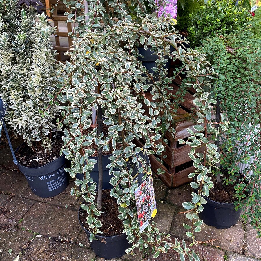 This shrub has been grafted on a stem to create a beautiful weeping patio tree