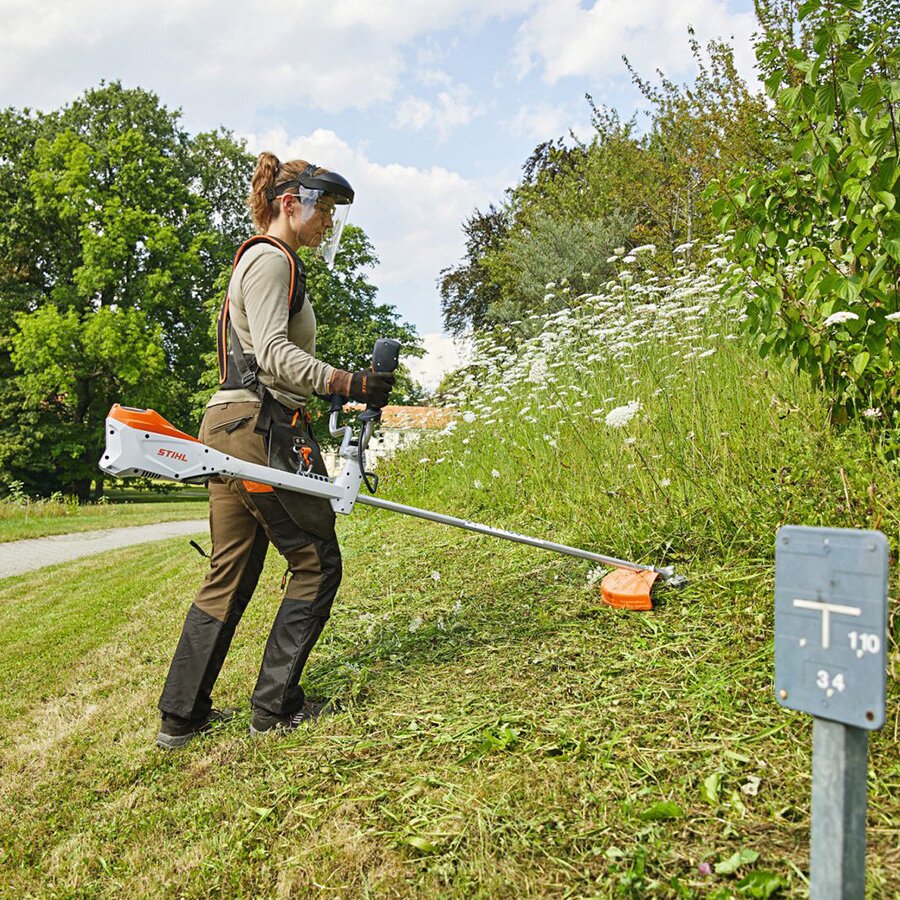 The FSA 135 is a powerful professional battery-powered brushcutter from STIHL. Part of the AP System and designed for professional users working landscaping and grounds maintenance. Packed with power and capable of taking on the toughest mowing, clearing and scrub cutting jobs with ease. As the tool is battery-powered, it’s especially suited for work in noise sensitive areas such as at hospitals, schools and housing estates.