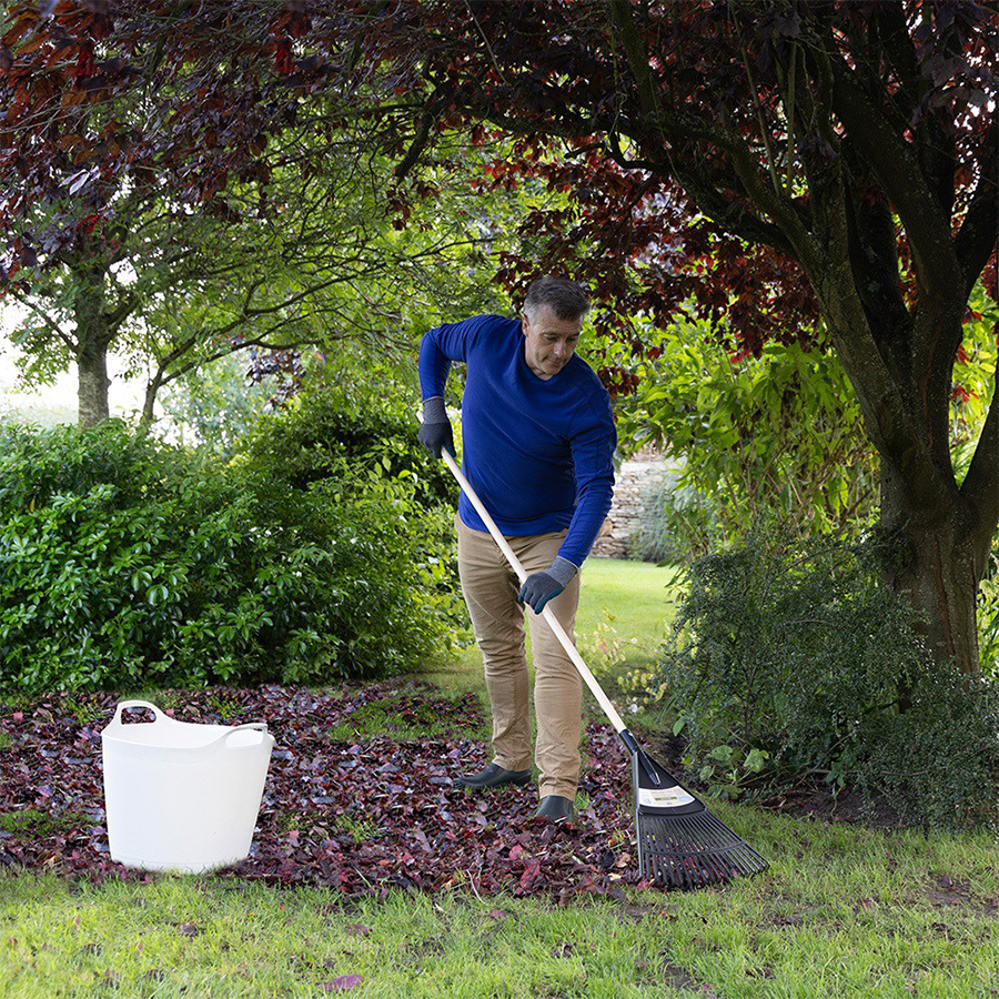 Large, lightweight rake, ideal for clearing large volumes of garden debris without damaging lawns and patios