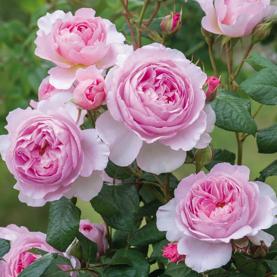 The blooms are a lovely glowing mid pink at the centre, paling towards the edges.